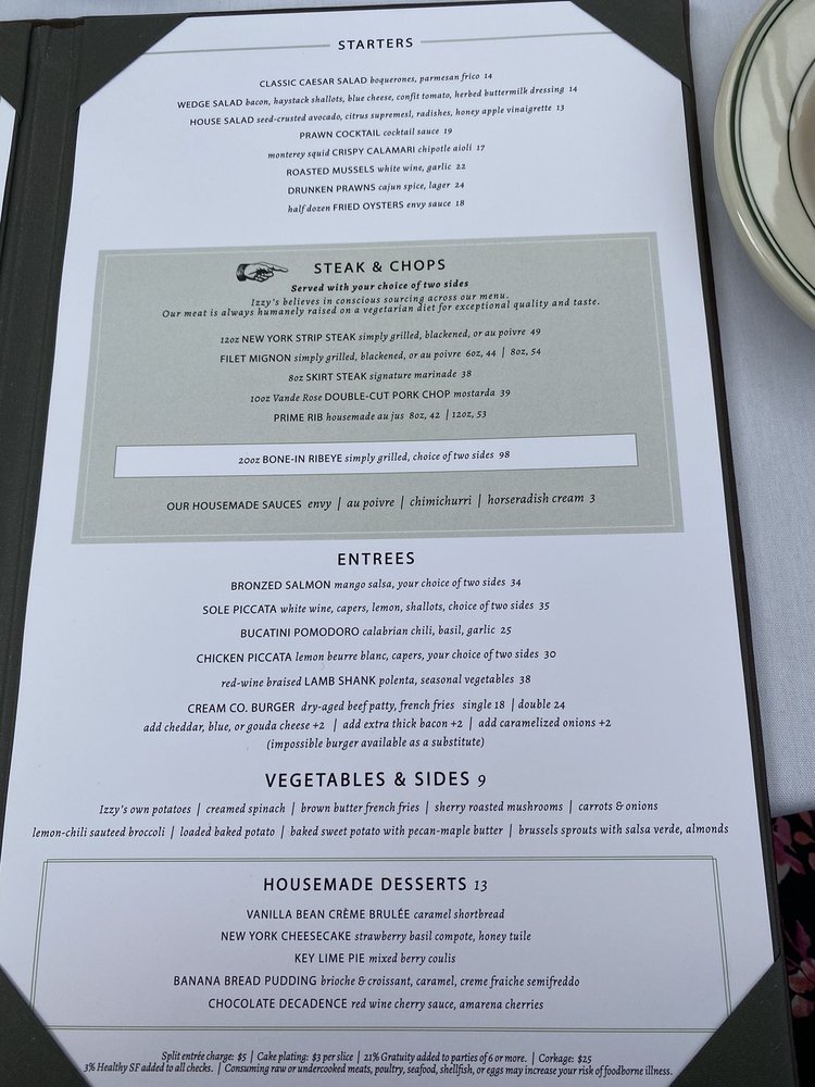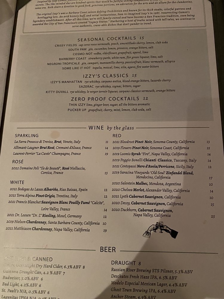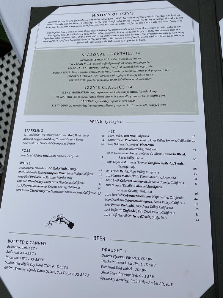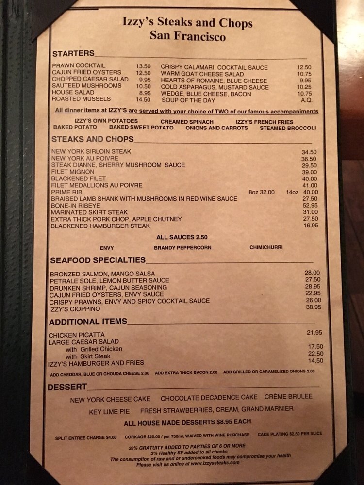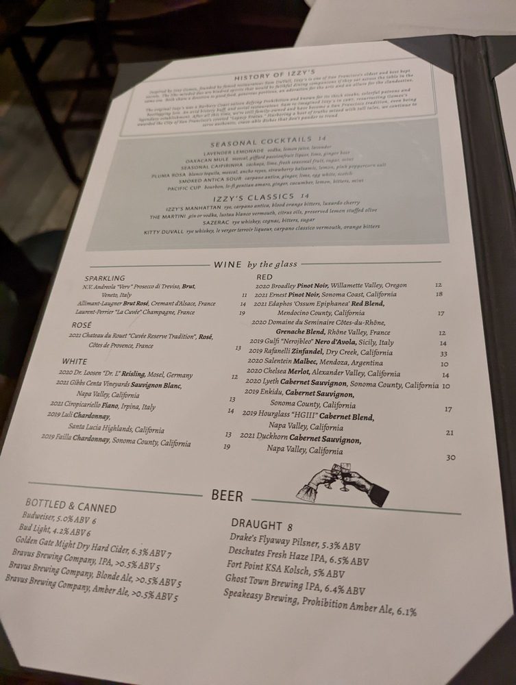 Izzy’s in San Francisco offers a wide range of dining options in a casual setting with excellent service. Located at 3345 Steiner St, this restaurant provides an extensive menu with diverse options such as shrimp cocktail, creamed spinach, steaks, and Izzy’s potatoes that have remained consistent over the years. Customers praise the generous portions and delicious flavors of dishes like the calamari and chicken piccata. The attentive wait staff, especially a charming French-accented server, adds to the overall dining experience. Celebrate special occasions or simply enjoy a casual meal at Izzy’s, known for its reliable food quality and timeless appeal. Whether seeking keto or vegetarian options or looking for a place that caters to all, Izzy’s is a restaurant that ensures an enjoyable dining experience for everyone.